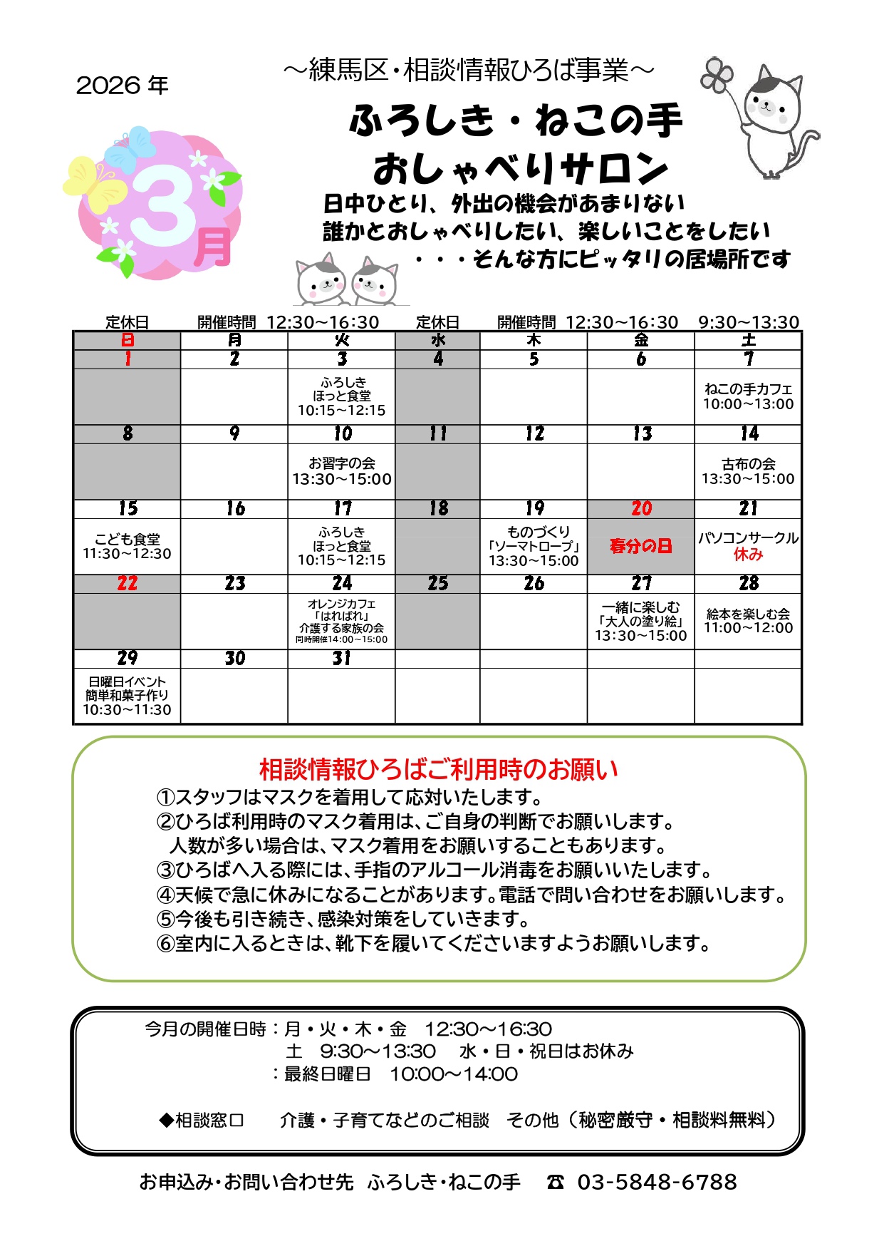 【ふろしき・ねこの手】イベントのご案内(2026年3月)
