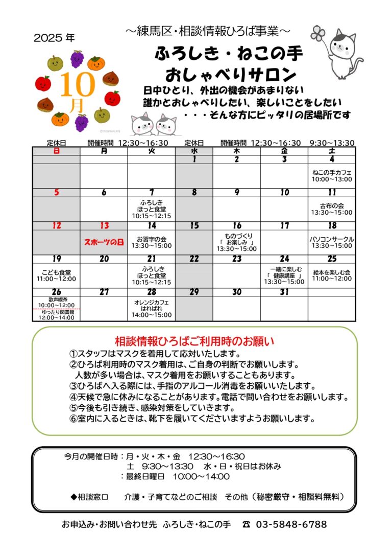 【ふろしき・ねこの手】イベントのご案内(2025年10月)