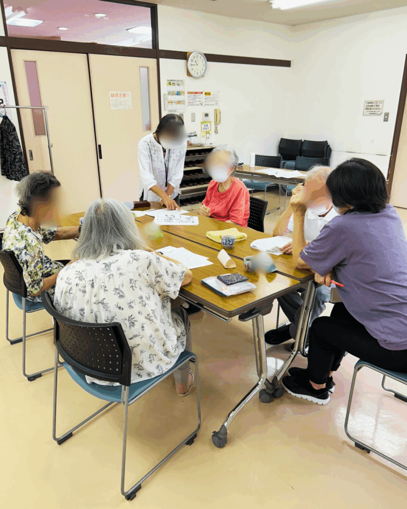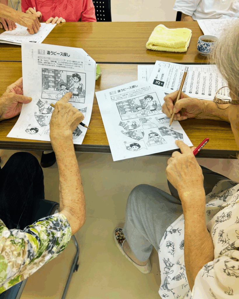 2025年8月28日(木)いきがいデイサービス中村地域集会所 投稿日 2025年9月29日 著者 furoshiki カテゴリー 活動報告 投稿 - コピー まずは体操からスタートねりま ゆる×らく体操、ラジオ体操、セラバンド、コグニサイズなど盛りだくさん✨久しぶりのセラバンドでは、体をゆっくりしっかり伸ばしながら、筋トレの要素も取り入れて体を鍛えました。 今日のアクティビティは脳トレ!・間違い探し・マッチ棒を1本動かして正しい計算式にする問題・ことわざの漢字思い出し・ナンプレ などなど・・・ ひとりでじっくり考えたり、近くの方と相談したりしながら、時間いっぱい取り組まれていました✨ 投稿 - コピー いきがいデイサービス中村地域集会所