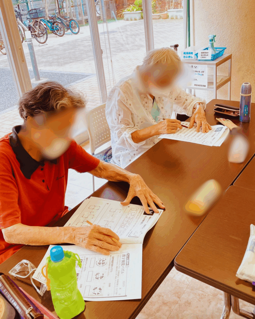 2025年8月29日(金)いきがいデイサービス早宮地区区民館 投稿日 2025年9月29日 著者 furoshiki カテゴリー 活動報告 投稿 - コピー まずは体操からスタート。セラバンドでは体を伸ばすだけでなく、握力を鍛えたり、手指の運動にも活用しています。 今日のアクティビティは脳トレ!・間違い探し・マッチ棒を1本動かして正しい計算式にする問題・ことわざの漢字思い出し・ナンプレ などなど・・・ 慣れている問題はスラスラと、難しい問題は近くの方と相談しながら挑戦!皆さん集中しつつも楽しそうに取り組まれ、予定よりも早く解き終わってしまいました✨ 投稿 - コピー いきがいデイサービス早宮地区区民館