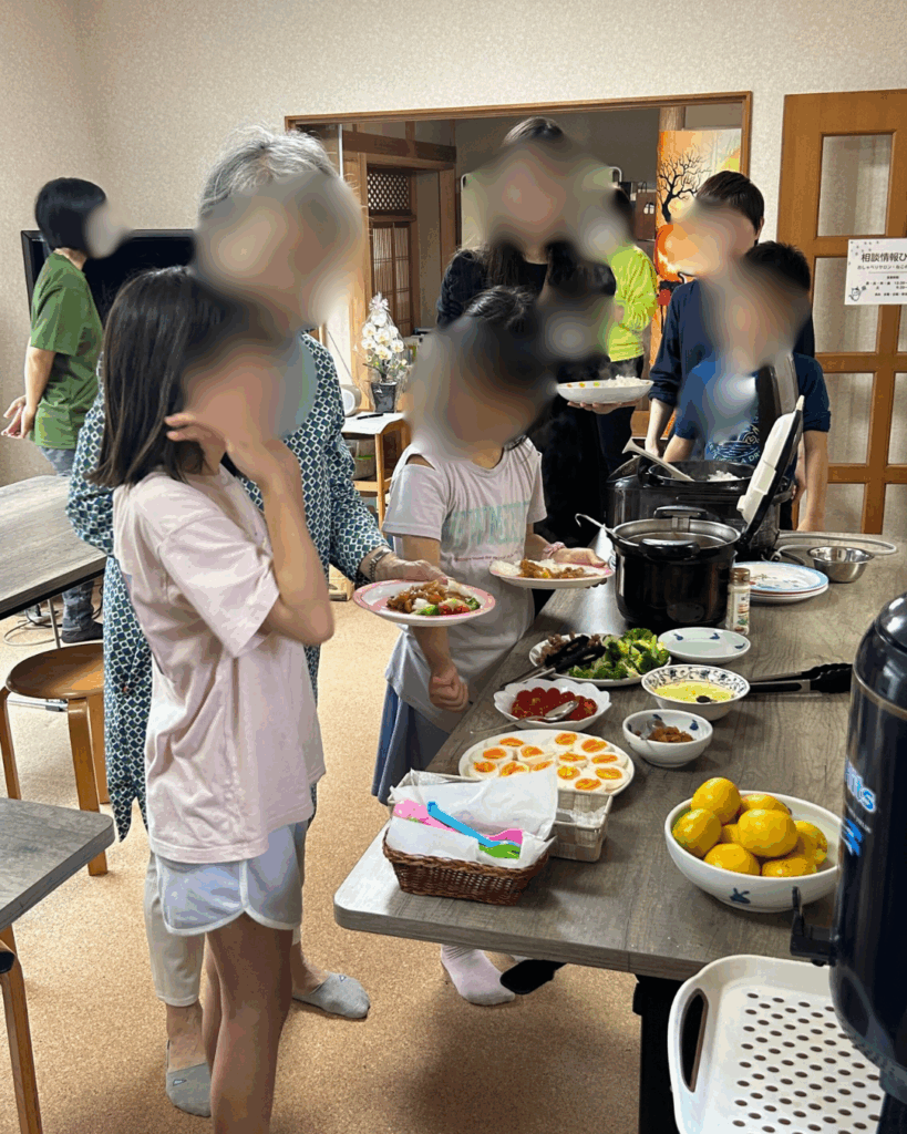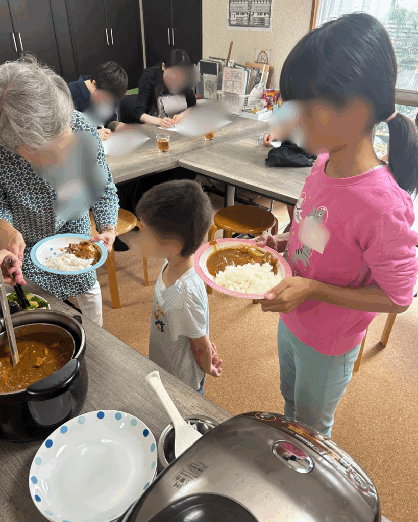 2025年10月19日(日)ふろしきこども食堂 投稿日 2025年11月26日 著者 furoshiki カテゴリー 活動報告 投稿 - コピー 今回のメニューはカレーライス。エビフライやタコさんウィンナー、ブロッコリー、ゆで卵、ミニトマト、チーズ、福神漬けなど、それぞれ好きなトッピングをのせて「自分だけのカレー」を楽しんでいただきました。 デザートはみかん・さつまいもフライ・かぼちゃプリンの秋らしい組み合わせになりました。 地域の皆さんのご協力のおかげで、今回も笑顔いっぱいのこども食堂を開催することができました。 投稿 - コピー ふろしきこども食堂
