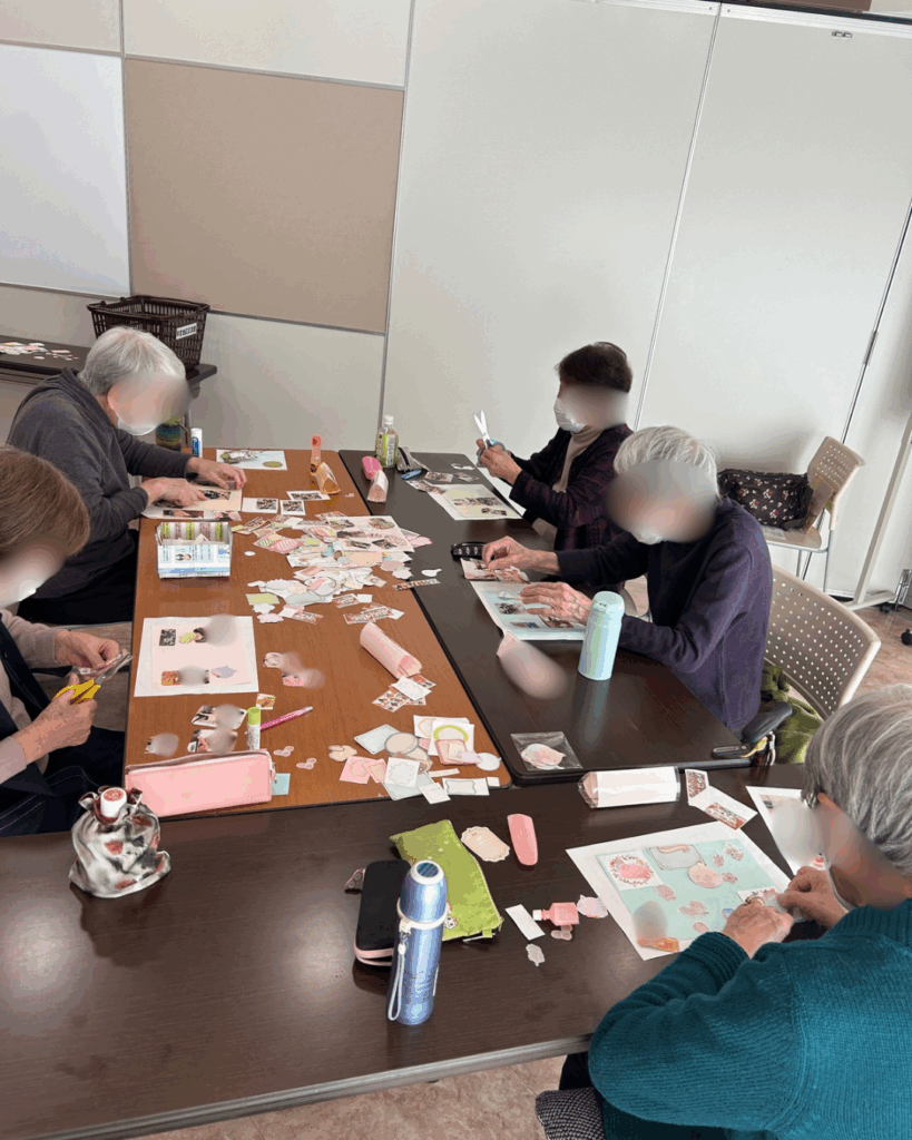 2025年11月14日(金)いきがいデイサービス早宮地区区民館 投稿日 2025年12月15日 著者 furoshiki カテゴリー 活動報告 投稿 - コピー アルバム作りを行いました。毎回撮りためた皆さんの写真を用意し、自由に選んでいただきながらページづくりを楽しみました。 飾りやフレームも豊富にご用意し、それぞれの思い出が引き立つ素敵なアルバムが完成。写真を選びながら「この時こんなことあったね」と思い出話に花が咲く、楽しいひとときになりました。 投稿 - コピー いきがいデイサービス早宮地区区民館